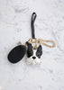 Bag Charm em forma de Bulldog com chaveiro grande.